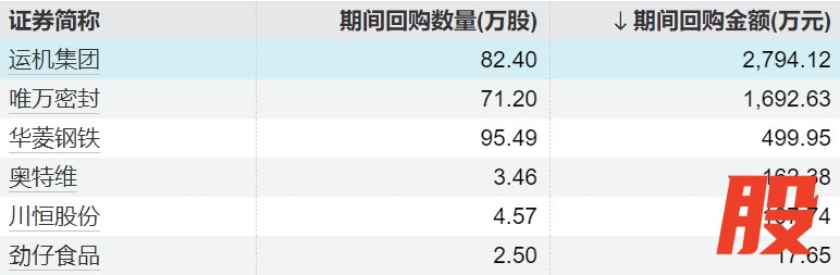6家上市公司股票获回购,运机集团回购金额最高6家上市公司股票获回购,运机集团回购金额最高