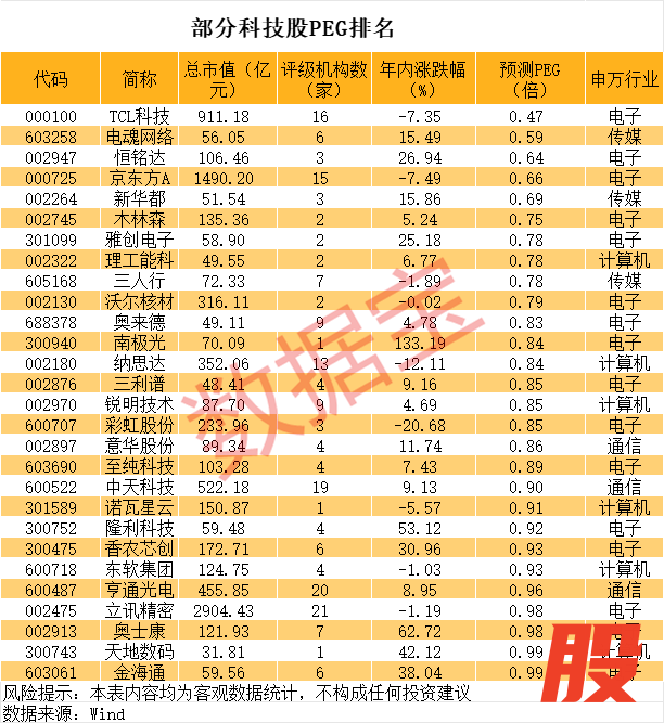 估值较低的科技股名单出炉估值较低的科技股名单出炉