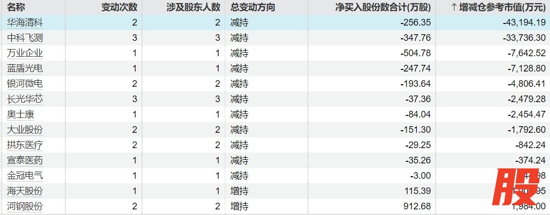 11家上市公司股票遭重要股东减持 华海清科减持金额最高11家上市公司股票遭重要股东减持 华海清科减持金额最高
